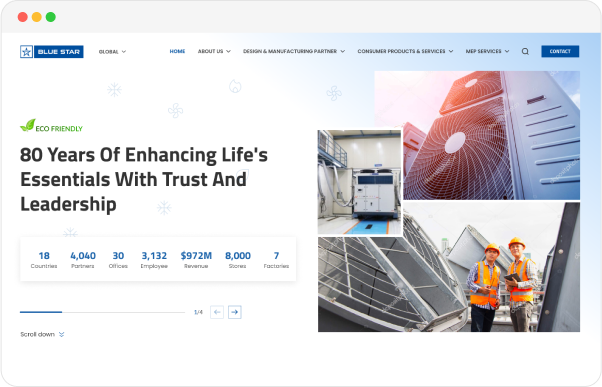 Bluestar, a prominent player in the e-commerce sector in India, required a robust and visually appealing website to enhance their online presence and improve customer engagement. The project aimed to develop a responsive, user-friendly, and scalable e-commerce website that could effectively showcase Bluestar's diverse product range and facilitate seamless online shopping.